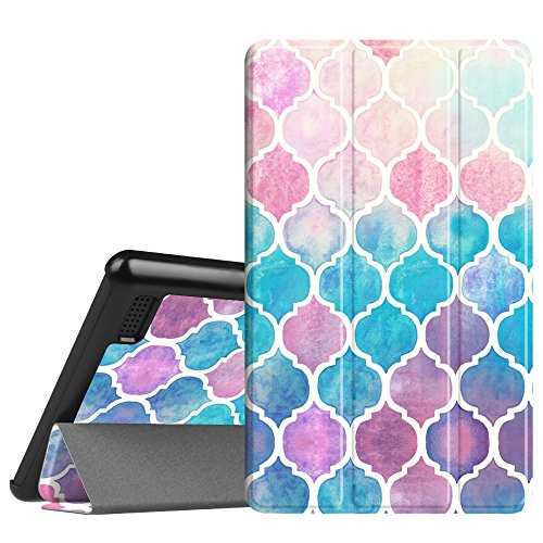 Protect your All-New Amazon Fire 7 Tablet (7" Display, 7th Generation, 2017 Release) with this Fintie Slim Shell Case at all times! The Slim Shell Case sports a simple and classy design. The back shell is made from durable polycarbonate material so you do not need to worry about any damages. It offers an easy clip-on application. Because the cover is uniquely designed to flip back and transform the case into a comfortable viewing stand that offers two different viewing angles, this capability allows the viewer to use the All-New Amazon Fire 7 Tablet (7th Generation, 2017) hands-free whatever your position may be without strain whether it is being used for viewing or for a keypad. All features of the Amazon Fire 7 Tablet (7th Generation, 2017) are accessible even with the case on. It even includes a camera hole so you can take pictures and videos without removing it. Watch movies and listen to music clearly with speaker holes! This one piece case will fit your New Fire 7 Tablet (7th Generation, 2017) like a glove. The Fintie Slim Shell Case comes in a variety of bright, fun colors, the widest selections to suite your taste. It offers an ideal way to protect your tablet wherever go.